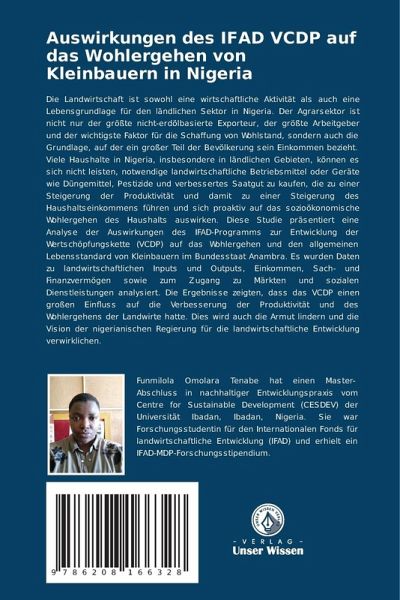 Die Landwirtschaft ist sowohl eine wirtschaftliche Aktivität als auch eine Lebensgrundlage für den ländlichen Sektor in Nigeria. Der Agrarsektor ist nicht nur der größte nicht-erdölbasierte Exporteur, der größte Arbeitgeber und der wichtigste Faktor für die Schaffung von Wohlstand, sondern auch die Grundlage, auf der ein großer Teil der Bevölkerung sein Einkommen bezieht. Viele Haushalte in Nigeria, insbesondere in ländlichen Gebieten, können es sich nicht leisten, notwendige landwirtschaftliche Betriebsmittel oder Geräte wie Düngemittel, Pestizide und verbessertes Saatgut zu kaufen, die zu einer Steigerung der Produktivität und damit zu einer Steigerung des Haushaltseinkommens führen und sich proaktiv auf das sozioökonomische Wohlergehen des Haushalts auswirken. Diese Studie präsentiert eine Analyse der Auswirkungen des IFAD-Programms zur Entwicklung der Wertschöpfungskette (VCDP) auf das Wohlergehen und den allgemeinen Lebensstandard von Kleinbauern im Bundesstaat Anambra. Es wurden Daten zu landwirtschaftlichen Inputs und Outputs, Einkommen, Sach- und Finanzvermögen sowie zum Zugang zu Märkten und sozialen Dienstleistungen analysiert. Die Ergebnisse zeigten, dass das VCDP einen großen Einfluss auf die Verbesserung der Produktivität und des Wohlergehens der Landwirte hatte. Dies wird auch die Armut lindern und die Vision der nigerianischen Regierung für die landwirtschaftliche Entwicklung verwirklichen.