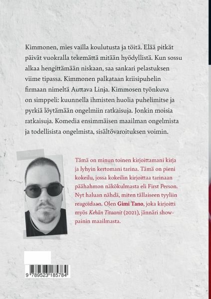Kimmonen, mies vailla koulutusta ja töitä. Elää pitkät päivät vuokralla tekemättä mitään hyödyllistä. Kun sossu alkaa hengittämään niskaan, saa sankari pelastuksen viime tipassa. Kimmonen palkataan kriisipuhelin firmaan nimeltä Auttava Linja. Kimmosen työnkuva on simppeli: kuunnella ihmisten huolija puhelimitse ja pyrkiä löytämään ongelmiin ratkaisuja. Jonkin moisia ratkaisuja. Komedia ensimmäisen maailman ongelmista ja todellisista ongelmista, sisältövaroituksen voimin.
