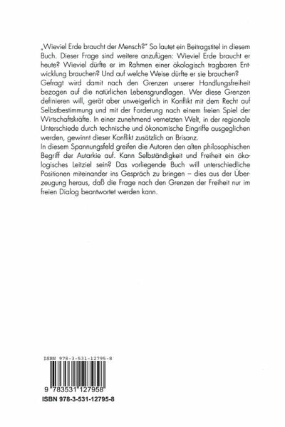 "Wieviel Erde braucht der Mensch?" So lautet ein Beitragsartikel in diesem Buch. Dieser Frage sind weitere anzufügen: Wieviel Erde braucht er heute? Wieviel dürfte er im Rahmen einer ökologisch tragbaren Entwicklung brauchen? Und auf welche Weise dürfte er sie brauchen?Gefragt wird damit nach den Grenzen unserer Handlungsfreiheit bezogen auf die natürlichen Lebensgrundlagen. Wer diese Grenzen definieren will, gerät aber unweigerlich in Konflikt mit dem Recht auf Selbstbestimmung und mit der Forderung nach einem freien Spiel der Wirtschaftskräfte. In einer zunehmend vernetzten Welt, in der regionale Unterschiede durch technische und ökonomische Eingriffe ausgeglichen werden, gewinnt dieser Konflikt zusätzlich an Brisanz.In diesem Spannungsfeld greifen die Autoren den alten philosophischen Begriff der Autarkie auf. Kann Selbständigkeit und Freiheit ein ökologisches Leitziel sein? Das vorliegende Buch will unterschiedliche Positionen miteinander ins Gespräch bringen - dies aus der Überzeugung heraus, daß die Frage nach den Grenzen der Freiheit nur im freien Dialog beantwortet werden kann.