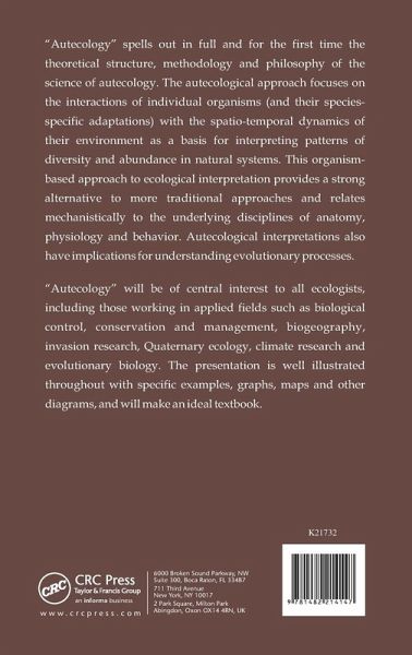 This book spells out the theoretical structure, methodology and philosophy of the science of autecology. The autecological approach focuses on the interactions of individual organisms (and their species-specific adaptations) with the spatio-temporal dynamics of their environment as a basis for interpreting patterns of diversity and abundance in natural systems. This organism-based approach to ecological interpretation provides a strong alternative to more traditional approaches and relates mechanistically to the underlying disciplines of anatomy, physiology, and behavior. The book includes illustrations, specific examples, graphs, maps, and other diagrams.