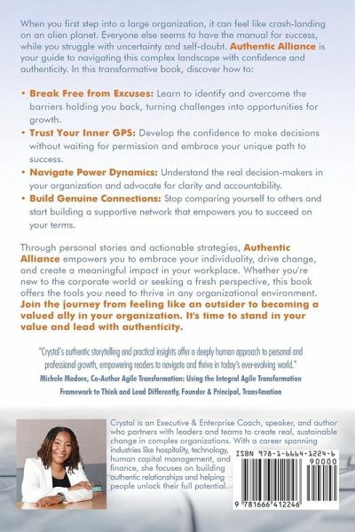 When you first step into a large organization, it can feel like crash-landing on an alien planet. Everyone else seems to have the manual for success, while you struggle with uncertainty and self-doubt. Authentic Alliance is your guide to navigating this complex landscape with confidence and authenticity. In this transformative book, discover how to:Break Free from Excuses: Learn to identify and overcome the barriers holding you back, turning challenges into opportunities for growth. Trust Your Inner GPS: Develop the confidence to make decisions without waiting for permission and embrace your unique path to success. Navigate Power Dynamics: Understand the real decision-makers in your organization and advocate for clarity and accountability. Build Genuine Connections: Stop comparing yourself to others and start building a supportive network that empowers you to succeed on your terms. Through personal stories and actionable strategies, Authentic Alliance empowers you to embrace your individuality, drive change, and create a meaningful impact in your workplace. Whether you're new to the corporate world or seeking a fresh perspective, this book offers the tools you need to thrive in any organizational environment. Join the journey from feeling like an outsider to becoming a valued ally in your organization. It's time to stand in your value and lead with authenticity. "Crystal's authentic storytelling and practical insights offer a deeply human approach to personal and professional growth, empowering readers to navigate and thrive in today's ever-evolving world." Michele Madore, Co-Author Agile Transformation: Using the Integral Agile Transformation Framework to Think and Lead Differently, Founder & Principal, Trans4mation "Finally, a book that cuts through the noise and provides practical, yet profound insights into how we can navigate the volatility of the modern workplace while staying true to ourselves. Crystal's experience and energy permeates the Authentic Alliance - her exceptional writing makes this a joy to read!" Jorgen Hesselberg, Author, Unlocking Agility, Co-Founder, Comparative Agility