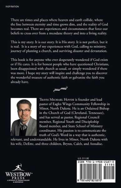 There are times and places where heaven and earth collide, where the line between eternity and time grows dim, and the reality of God becomes real. There are experiences and circumstances that force our beliefs to cross over from a mundane theory and into a living reality. This is my story. It is our story. It is His story. It is not perfect, but it is real. It is a story of my experiences with God, calling to ministry, journey of planting a church, and surviving disaster and devastation. This book is for anyone who ever desperately wondered if God exists or if He cares. It is for honest people who have questioned Christians, been disappointed with church as usual, or simply wondered if there was more. I hope my story will inspire and challenge you to discover the wonderful treasure of authentic faith or galvanize the faith you already have.