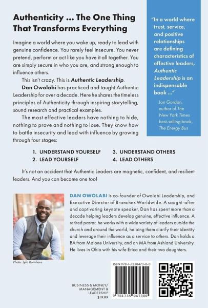 Authenticity ... The One Thing That Transforms Everything Imagine a world where you wake up, ready to lead with genuine confidence. You rarely feel insecure. You never pretend, perform or act like you have it all together. You are simply secure in who you are, and strong enough to influence others. This isn't crazy. This is Authentic Leadership. Dan Owolabi has practiced and taught Authentic Leadership for over a decade. Here he shares the timeless principles of Authenticity through inspiring storytelling, sound research and practical examples. The most effective leaders have nothing to hide, nothing to prove and nothing to lose. They know how to battle insecurity and lead with influence by growing through four stages: Understand Yourself Lead Yourself Understand Others Lead Others It's not an accident that Authentic Leaders are magnetic, confident, and resilient leaders. And you can become one too! DAN OWOLABI is co-founder of Owolabi Leadership, and Executive Director of Branches Worldwide. A sought-after and captivating keynote speaker, Dan has spent more than a decade helping leaders develop genuine, effective influence. A retired pastor, he works with a wide variety of leaders outside the church and around the world, helping them clarify their identity and leverage their influence as a service to others. Dan holds a BA from Malone University, and an MA from Ashland University. He lives in Ohio with his wife Erica and their two daughters.