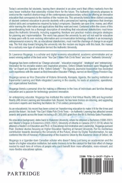 Dr. Lawrence Muganga, is a scholar and digital economy educationist, academic administrator and an award winning author of the best seller "You Can't Make Fish Climb Trees" and now "Authentic University". Muganga has been conferred as 'Change advocate', 'education evangelist', 'strategist' and 'enterprising'. Venerated for his enviable oratory and inspiration prowess; Oxford Debate bestowed upon Muganga the title "an Expert and Speaker of the 'Oxford Debate'". The Uganda Journalist Association has decorated such expertness with the award as Best Innovative Educator! Fittingly, named on World Press Freedom Day. Muganga serves as Vice Chancellor of Victoria University, Kampala, Uganda, the leading institution on Experiential Learning and Work-integrated Learning in the country, he leads all academic, operational, and organizational functions. Muganga blends a personal drive for making a difference in the lives of individuals and families through education and a passion for technology-powered innovation. An enterprising educator, Muganga has instituted the nation's first Virtual Reality (VR) and Augmented Reality (AR) driven Learning and Innovation Hub. Beyond, he has been tireless on retooling, and upgrading curriculum experts and teaching facilitators for 21st century prerequisites. As an educationist, his record has been coined on 'transforming education to make it fit for the times and predict the future'; his book "You Can't Make Fish Climb Trees - on Authentic Learning has attracted several awards and grants across the board including a $1,300,000 grant from the Bill & Melinda Gates Foundation. His education background, dates back to Makerere University, where he obtained a Bachelors (1998-2001) and Master's Degree in Economics (2005-2007), University of Alberta in Canada (2012-2018) where he attained a Master's in Education and Ph.D. in Educational Administration and Leadership. Muganga pursued Post- Doctoral studies focusing on Higher Education Teaching at Harvard University. For his meritorious contribution towards developing the University of the Future, driven by Digital Transformation, he was conferred the title of Honorary Professorship of the Academic Union by the Academic Union of Oxford, UK. Muganga is a Ugandan-born Canadian scholar who doesn't fancy just being an academician and the leader of a higher education institution, but works tirelessly to be the catalyst for that tidal effect of change needed to reach tens of millions of people who could benefit from more-affordable, more-relevant, and more-flexible educational options.