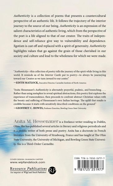 Authenticity is a collection of poems that presents a countercultural perspective of an authentic life. It follows the trajectory of the interior journey to the source of our being. Authenticity is an expression of the salient characteristics of authentic living, which from the perspective of the poet is a life aligned to that of our creator. The traits of independence and self-reliance give way to vulnerability and dependence. Egotism is cast off and replaced with a spirit of generosity. Authenticity highlights values that go against the grain of those cherished in our society and culture and lead to the wholeness for which we were made.