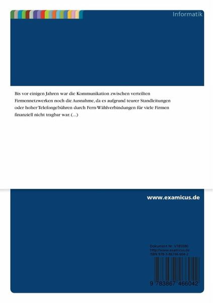 Diplomarbeit aus dem Jahr 2004 im Fachbereich Informatik - Wirtschaftsinformatik, Note: 1.2, Duale Hochschule Baden-Württemberg Mannheim, früher: Berufsakademie Mannheim, Sprache: Deutsch, Abstract: Bis vor einigen Jahren war die Kommunikation zwischen verteilten Firmennetzwerken noch die Ausnahme, da es aufgrund teurer Standleitungen oder hoher Telefongebühren durch Fern-Wählverbindungen für viele Firmen finanziell nicht tragbar war. Durch die rasante Entwicklung automatisierter Prozessabläufe kann ein Unternehmen in der heutigen Zeit allerdings nur durch eine standortübergreifende Kommunikation wettbewerbsfähig bleiben, was somit zum grundlegenden Gerüst der Wirtschaftlichkeit eines Unternehmens wird. Die Anbindung von entfernten Zweigstellen oder mobilen Mitarbeitern an das zentrale Hauptnetz wird durch die Nutzung öffentlicher Netzinfrastrukturen ermöglicht. Da diese nicht exklusiv, sondern gemeinsam mit vielen unterschiedlichen Verbindungen genutzt werden, befasst sich dieseArbeit mit dem sicheren Aufbau von standortübergreifenden privaten (Firmen-)Netzwerken mittels sog. Virtual Private Networks (VPN?s). Die Spezialisierung dieser Arbeit liegt dabei auf der Benutzerauthentifizierung.Der erste Abschnitt befasst sich mit dem Begriff VPN und beschreibt anschließend die Funktionsweise dieser Lösung, bevor im nächsten Teil auf die Technologien Frame Relay, ATM, ISDN und Internet eingegangen wird, auf Basis derer ein VPN implementiert werden kann. Der folgende Punkt sensibilisiert den Leser mit der Sicherheitsproblematik, die eine Verwendung öffentlicher Netze mit sich bringt. Hier werden die Konzepte angesprochen, welche bei der Implementierung eines VPN zum Einsatz kommen, um den Anforderungen der Datenauthentizität, -integrität, -vertraulichkeit sowie Verfügbarkeit und Geschwindigkeit der Datenübermittlung gerecht zu werden. Dabei handelt es sich um Firewalls, Tunneling-Verfahren, Verschlüsselung und Authentifizierung. Der letzte Punkt stellt das Thema des längsten Abschnitts dar, in welchem die unterschiedlichen Authentifizierungswerkzeuge der Merkmale Wissen, Besitz und Eigenschaft ausgiebig bearbeitet werden. Dabei gehe ich neben der Funktionsweise und Vor- bzw. Nachteilen der jeweiligen Werkzeuge auf die Faktoren Zuverlässigkeit, Kosten, Schnelligkeit, Benutzerfreundlichkeit bzw. -akzeptanz und die Eignung für den (mobilen) Einsatz in VPN?s ein.Als Abschluss werden in einem Fazit nochmals die Vor- und Nachteile der möglichen Authentifizierungsmerkmale Wissen, Besitz und Eigenschaft aufgegriffen, um anhand von Beispielen auf die Notwendigkeit der Zwei-Faktor-Authentifizierung hinzuweisen.