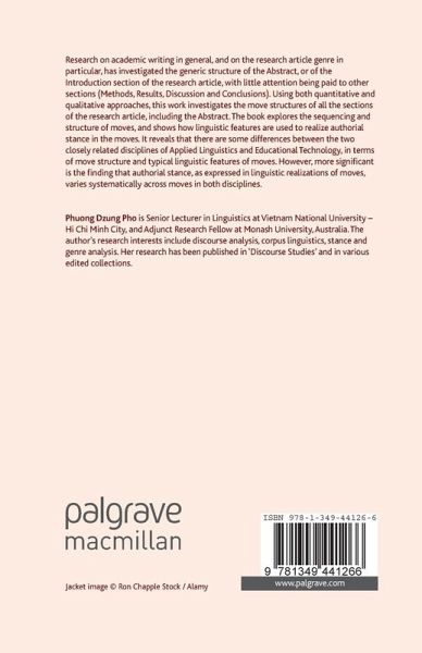 Phuong Dzung Pho is Senior Lecturer in Linguistics at Vietnam National University, and Adjunct Research Fellow at Monash University, Australia. The author's research interests include discourse analysis, corpus linguistics, stance and genre analysis. Her research has been published in 'Discourse Studies' and in various edited collections.