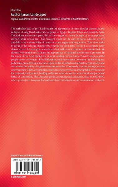 The turbulent year of 2011 has brought the appearance of mass popular unrest and the collapse of long lived autocratic regimes in Egypt, Tunisia, Libya and possibly Syria. The sudden and unanticipated fall of these regimes - often thought of as exemplars of authoritarian resilience - has brought much of the conventional wisdom on the durability and vulnerability of nondemocratic regimes into question. This book seeks to advance the existing literature by treating the autocratic state not as a unitary actor characterized by strength or weakness but rather as a structure or terrain that can alternatively inhibit or facilitate the appearance of national level forms of protests. In the mode of the Arab Spring, the color revolutions of the former Soviet Union, and the people power movement of the Philippines, such movements overcome the daunting impediments presented by autocrats, appeal to likeminded counterparts across society, and overwhelm the ability of regimes to maintain order.Conversely, in other settings, such as contemporary China, decentralized state structures provide an inhospitable environment for national-level protest, leading collective actors to opt for more local and parochial forms of contention. This outcome produces paradoxical situations, such as in the PRC, where protests are frequent but national-level mobilization and coordination is absent.
