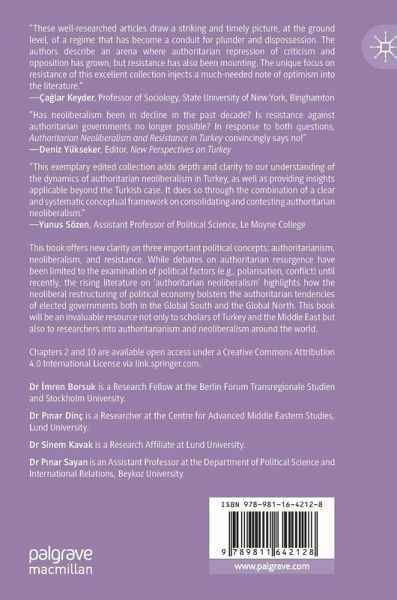This book offers new clarity on three important political concepts: authoritarianism, neoliberalism, and resistance. While debates on authoritarian resurgence have been limited to the examination of political factors (e.g., polarisation, conflict) until recently, the rising literature on 'authoritarian neoliberalism' highlights how the neoliberal restructuring of political economy bolsters the authoritarian tendencies of elected governments both in the Global South and the Global North. This book will be an invaluable resource not only to scholars of Turkey and the Middle East but also to researchers into authoritarianism and neoliberalism around the world. Chapters 2 and 10 are available open access under a Creative Commons Attribution 4.0 International License via link.springer.com.