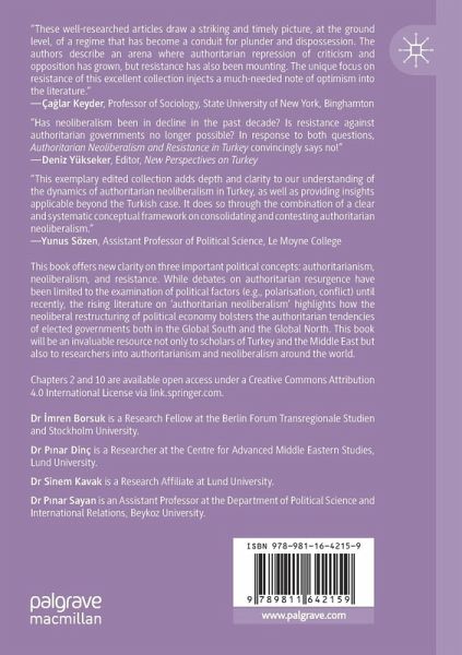 This book offers new clarity on three important political concepts: authoritarianism, neoliberalism, and resistance. While debates on authoritarian resurgence have been limited to the examination of political factors (e.g., polarisation, conflict) until recently, the rising literature on 'authoritarian neoliberalism' highlights how the neoliberal restructuring of political economy bolsters the authoritarian tendencies of elected governments both in the Global South and the Global North. This book will be an invaluable resource not only to scholars of Turkey and the Middle East but also to researchers into authoritarianism and neoliberalism around the world. Chapters 2 and 10 are available open access under a Creative Commons Attribution 4.0 International License via link.springer.com.
