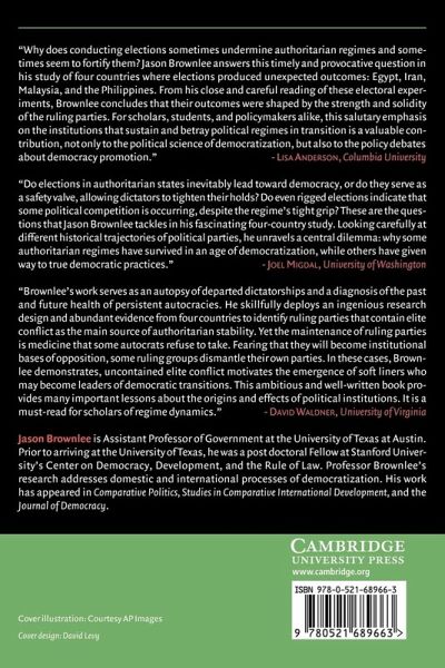 Far from sweeping the globe uniformly, the 'third wave of democratization' left burgeoning republics and resilient dictatorships in its wake. Applying more than a year of original fieldwork in Egypt, Iran, Malaysia, and the Philippines, Jason Brownlee shows that the mixed record of recent democratization is best deciphered through a historical and institutional approach to authoritarian rule. Exposing the internal organizations that structure elite conflict, Brownlee demonstrates why the critical soft-liners needed for democratic transitions have been dormant in Egypt and Malaysia but outspoken in Iran and the Philippines. By establishing how ruling parties originated and why they impede change, Brownlee illuminates the problem of contemporary authoritarianism and informs the promotion of durable democracy.