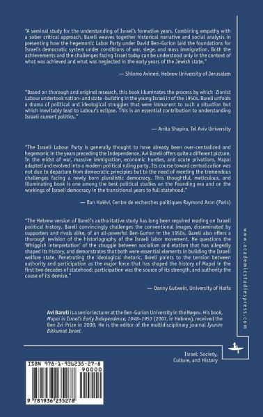 Authority and Participation in a New Democracy focuses on the changes undergone by Mapai, Israel's first ruling party, during Israel's first years of independence, then analyzes the effects of these changes in relation to Israeli political culture. Bareli's main claim is that it was only during this period that a hierarchically-organized group of leaders succeeded in imposing its dominance, fostering obedience within the party and creating oligarchic characteristics in Israel's democracy. The influence of the kibbutz movement, the moshavim movement and of urban intelligentsia- who represented the opposite political view of participatory democracy-was reduced to a minimum. This process would have a profound impact on issues of equality, on the relations between veteran Israelis and immigrants from both European and Islamic countries, and on social and civic norms.
