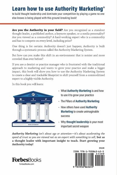 Learn how to use Authority Marketing® to build thought leadership and dominate your competition by playing a game no one else knows is being played with this ground-breaking book! Are you the Authority in your field? Are you recognized as a stand-out thought leader, a published author, a keynote speaker, or a media personality? Are you viewed as a commodity? A hard-working expert who is a commodity and has to compete on every level, including price? One thing is for certain: Authority doesn't just happen; Authority is built through a systematic process called the Authority Marketing System. But how can you make this shift in an environment that is noisier and more crowded than ever before? If you are a dentist or practice manager who is frustrated with the traditional approach to marketing and wants to grow your practice and make a bigger impact, this book will show you how to use the Authority Marketing System to create a clear and trackable blueprint to shift yourself from a commoditized expert to a highly visible Authority. In this book you will learn: ¿ What Authority Marketing is and how to use it to grow your practice ¿ The Pillars of Authority Marketing ¿ How others have used Authority Marketing to create unimaginable success ¿ Why thought leadership is your most important secret weapon Authority Marketing isn't about ego or attention-it's about accelerating the speed of trust so you are viewed not as an expert with something to sell, but as a thought leader with important insight to teach. Start growing your Authority today!