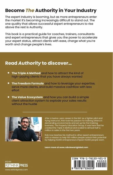 Become The Authority in Your Industry The expert industry is booming, but as more entrepreneurs enter the market it’s becoming increasingly difficult to stand out. The one quality that allows successful expert entrepreneurs to rise above the rest is Authority. This book is a practical guide for coaches, trainers, consultants and expert entrepreneurs that gives you the power to accelerate your expert status, attract clients with ease, charge what you’re worth and change people’s lives. Read Authority to discover… The Triple A Method and how to attract the kind of high-paying clients that you have always wanted The Freedom Formula and how to leverage your expertise, serve more clients, and build massive cashflow with less effort The Value Ecosystem and how you can build a simple client attraction system to explode your sales results without the hustle