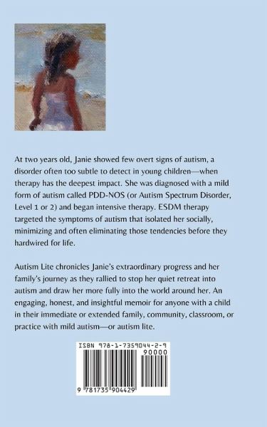 Finalist in the 2021 Independent Author Network Book of the Year Awards "Wonderful resource for parents of a newly diagnosed, very young child and a great introduction to the Early Start Denver Model of effective early therapy. Lots of practical tips for working with autistic children aged two to four." -Temple Grandin, author, The Way I See It, Thinking in Pictures The story of one family's experience pulling their daughter out of autism. A bold, playful, and affectionate two-year-old, Janie showed few overt signs of autism, a disorder often too subtle to detect in young children-when therapy has the deepest impact. At the pediatrician's suggestion, she was evaluated and diagnosed with a mild, high-functioning form of autism called PDD-NOS (or Autism Spectrum Disorder, Level 1 or 2). Janie began intensive therapy following the Early Start Denver Model (ESDM), a behavioral and developmental therapy fast becoming one of the most effective treatments worldwide for children with autism under the age of five. With a talented therapist leading the way, Janie's family rallied around her to stop her quiet retreat into autism and draw her more fully into the world around her. Through play routines, like popping bubbles, obstacle courses, and singing, ESDM therapy targeted the symptoms that isolated her socially, minimizing and often eliminating those tendencies before they hardwired for life. Autism Lite chronicles Janie's extraordinary progress and her family's journey recognizing and understanding mild autism, from choosing a therapy to navigating school IEPs, from handling anxiety and eating issues to family sessions where her siblings learned to play with Janie in ways that developed her social skills, to seeing their daughter gain critical communication skills, begin to relate to other children, and eventually make friends. An engaging, honest, and insightful memoir for anyone with a child in their immediate or extended family, community, classroom, or practice with mild autism.