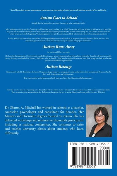 If you like realistic stories, compassionate characters, and overcoming adversity, then you'll adore these stories of love and family. Autism Goes to School - A single dad. An autistic boy. A teacher. Can they be what each other needs? After suddenly receiving custody of his five year old son, Ben must learn how to be a dad. The fact that he'd even fathered a child was news to him. Not only does this mean restructuring his sixty-hour workweek and becoming responsible for another human being, but also Kyle has autism. Enter the school system and a shaky beginning. Under the guidance of a gifted teacher, Ben and Kyle take tentative steps to becoming father and son. Teacher Melanie Nicols sees Ben as a deadbeat dad, but grudgingly comes to admire how he hangs in, determined to learn for his son's sake. Her admiration grows to more as father and son come to rely on Melanie being a part of their lives. Autism Runs Away - An autistic child flees in a panic. His last school couldn't cope. Now, his mom's enrolled him in a new school but remains glued to her phone, waiting for the call to tell her to come pick him up, that they can't handle him, that they don't know what to do with a child who has autism. How can she trust these strangers to look after her son, just one small child among hundreds? Autism Belongs - Manny doesn't talk. He doesn't leave the house. His parents desperately try to arrange their world so that Manny does not get upset. Because, when he does, well, the aggression was getting worse. Dare they consider letting him go to school? Is there a chance that Manny actually belongs there? From the creative mind of a psychologist, teacher, and specialist in autism disorders comes a collection of five memorable novels of life and love on the spectrum. Featuring schoolkids, shut-ins, and chefs, these unique fictional accounts depict the challenges and celebrate the joys of raising children and young adults with special needs. Buy Autism School Daze Trilogy to join a brave journey of love and understanding today!