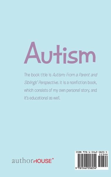 The book title is Autism: From a Parent and Siblings' Perspective. It is a nonfiction book, which consists of my own personal story, and it's educational as well.