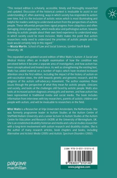 This expanded second edition of Mitzi Waltz's Autism: A Social and Medical History offers an in-depth examination of how the condition was perceived before it became a separate area of investigation, and how autism has been conceptualised and treated since. As well as strengthening the existing text, Waltz has added material on a number of topics that have received increased attention since the first edition, including the rise of the anti-vaccination movement, the shift towards genetic and genomic research, and the progress of the autism self-advocacy movement.