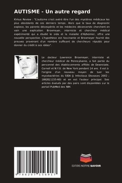 Kirkus Review : "L'autisme s'est avéré être l'un des mystères médicaux les plus obsédants de ces derniers temps. Alors que le taux de diagnostic explose, les parents désespérés et les médecins déconcertés cherchent en vain une explication. Broxmeyer, interniste et chercheur médical expérimenté qui a étudié le sida et la maladie d'Alzheimer, offre une nouvelle perspective. L'hypothèse est fascinante et Broxmeyer fournit des preuves provenant d'un nombre suffisant de chercheurs réputés pour donner du crédit à ses idées".