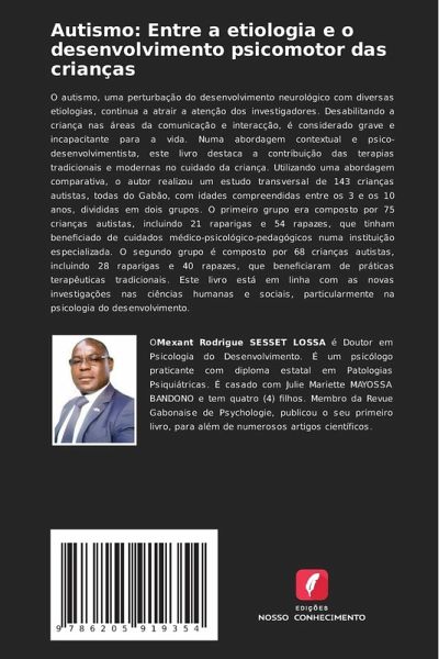 O autismo, uma perturbação do desenvolvimento neurológico com diversas etiologias, continua a atrair a atenção dos investigadores. Desabilitando a criança nas áreas da comunicação e interacção, é considerado grave e incapacitante para a vida. Numa abordagem contextual e psico-desenvolvimentista, este livro destaca a contribuição das terapias tradicionais e modernas no cuidado da criança. Utilizando uma abordagem comparativa, o autor realizou um estudo transversal de 143 crianças autistas, todas do Gabão, com idades compreendidas entre os 3 e os 10 anos, divididas em dois grupos. O primeiro grupo era composto por 75 crianças autistas, incluindo 21 raparigas e 54 rapazes, que tinham beneficiado de cuidados médico-psicológico-pedagógicos numa instituição especializada. O segundo grupo é composto por 68 crianças autistas, incluindo 28 raparigas e 40 rapazes, que beneficiaram de práticas terapêuticas tradicionais. Este livro está em linha com as novas investigações nas ciências humanas e sociais, particularmente na psicologia do desenvolvimento.