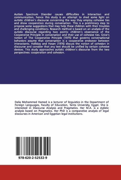 Autism Spectrum Disorder causes difficulties in interaction and communication, hence this study is an attempt to shed some light on autistic children's discourse concerning the way they employ cohesive ties and show cooperation during conversation. This is a preliminary step to propose some suggestions that may help these children with their troubles and challenging conditions. Research method is based on an analysis of the autistic discourse regarding two points: children's observance of the Cooperative Principle in conversation and their use of cohesive ties. Grice's notion of The Cooperative Principle (1975) that governs conversational behaviors assume that conversation is a cooperative endeavor between interactants. Halliday and Hasan (1976) discuss the notion of cohesion in discourse and consider that any text should be unified by certain cohesive devices. This study approaches autistic children's discourse from the two perspectives: cooperation and cohesion.