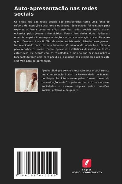 Os sítios Web das redes sociais são considerados como uma fonte de reforço da interação social entre os jovens. Este estudo foi realizado para explorar a forma como os sítios Web das redes sociais estão a ser utilizados pelos jovens universitários. Foram formuladas duas hipóteses: uma diz respeito à auto-apresentação e a outra à interação social. Uma vez que o Facebook é o sítio Web de redes sociais mais utilizado pelos jovens, foi selecionado para testar a hipótese. O método de inquérito é utilizado para recolher os dados. Foram aplicadas estatísticas descritivas e testes estatísticos. De acordo com os resultados, a maioria das pessoas utiliza o Facebook durante uma hora por dia e a maioria dos utilizadores utiliza este sítio Web para se apresentar.