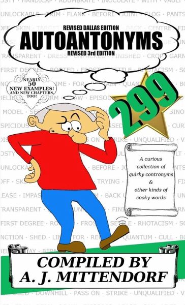 From the Back Cover: This book begins as a collection of collections of collections of different types of English words that confuse meaning or effectuate obfuscation, the first and foremost of which is an assemblage of 298 autoantoymns, 33% of which A. J. Mittendorf compiled from his own research. The others he assembled from a variety of sources, online as well as print. Other segments include "antiantonyms:" Synonyms that look like opposites, such as "Flammable" and "Inflammable." A. J. has discovered the vast majority of the autoantonyms in this volume. Also included are words with letters pronounced twice (such as "English," in which the "g" is pronounced once in "Eng" and again in "glish") and words with ghost letters (words with letters that are pronounced but are not included in the standard spelling, such as, "Going," in which there is a ghost "w)." We don't say "go-ing," we say, "go-wing." Additionally, there are articles on a variety of words, such as "renege," "ain't" and "alright," with other articles on punctuation and grammar rules and other topics of interest. All told, this little book is likely one of the most topically unified, compact and informatively surprising bathroom readers money can buy. You'll want to spend extra hours on the loo and away from your cell just to enjoy this little book.