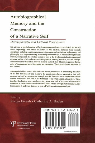 It is a truism in psychology that self and autobiographical memory are linked, yet we still know surprisingly little about the nature of this relation. Scholars from multiple disciplines, including cognitive psychology, developmental psychology, anthropology, and philosophy have begun theorizing and writing about the ways in which autobiographical memory is organized, the role that narratives play in the development of autobiographical memory, and the relations between autobiographical memory, narrative, and self concept. If narratives are a critical link between memory and self, then it becomes apparent that the roles of language and social interaction are paramount. These are the issues addressed in this volume.