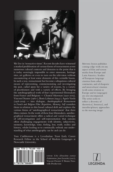 We live in 'reenactive times'. Recent decades have witnessed a marked proliferation of various forms of reenactment across numerous cultural contexts and domains to the point that it is today seemingly impossible to enter museums, heritage sites, art galleries or even to turn on the television without encountering at least some elements of this veritable boom. In such a way, reenactment has become a ubiquitous cultural means of representing, commemorating and investigating the past, called upon for a variety of reasons, by a variety of practitioners and with a variety of effects. By bringing the autobiographical work of four experimental filmmakers from France and Belgium - Chantal Akerman (1950-2015), Vincent Dieutre (1960-), Boris Lehman (1944-), Agnès Varda (1928-2019) - into dialogue, Autobiographical Reenactment in French and Belgian Film: Repetition, Memory, Self considers them in relation to this broad cultural shift and explores the various forms of 'autobiographical reenactment' that their films contain. In the work of these four filmmakers, autobiographical reenactment offers a radical and varied technique of self-investigation and self-representation that sustains often challenging engagements with identity, subjectivity, memory, knowledge, time, feeling, loss, truth, reality and history, whilst leading us to continually rethink our understanding of what autobiography can be and can do. Tom Cuthbertson is a Leverhulme Trust Early Career Research Fellow in the School of Modern Languages at Newcastle University.