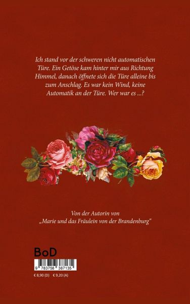 Ich stand vor der schweren nicht automatischen Türe. Ein Getöse kam hinter mir aus Richtung Himmel, danach öffnete sich die Türe alleine bis zum Anschlag. Es war kein Wind, keine Automatik an der Türe. Wer war es ...?Von der Autorin von "Marie und das Fräulein von der Brandenburg"