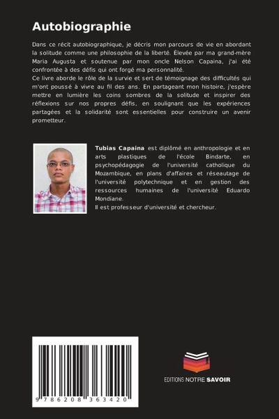 Dans ce récit autobiographique, je décris mon parcours de vie en abordant la solitude comme une philosophie de la liberté. Élevée par ma grand-mère Maria Augusta et soutenue par mon oncle Nelson Capaina, j'ai été confrontée à des défis qui ont forgé ma personnalité. Ce livre aborde le rôle de la survie et sert de témoignage des difficultés qui m'ont poussé à vivre au fil des ans. En partageant mon histoire, j'espère mettre en lumière les coins sombres de la solitude et inspirer des réflexions sur nos propres défis, en soulignant que les expériences partagées et la solidarité sont essentielles pour construire un avenir prometteur.