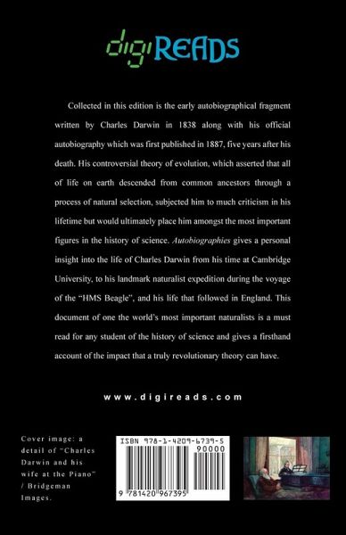 Collected in this edition is the early autobiographical fragment written by Charles Darwin in 1838 along with his official autobiography which was first published in 1887, five years after his death. His controversial theory of evolution, which asserted that all of life on earth descended from common ancestors through a process of natural selection, subjected him to much criticism in his lifetime but would ultimately place him amongst the most important figures in the history of science. "Autobiographies" gives a personal insight into the life of Charles Darwin from his time at Cambridge University, to his landmark naturalist expedition during the voyage of the "HMS Beagle", and his life that followed in England. This document of one the world's most important naturalists is a must read for any student of the history of science and gives a firsthand account of the impact that a truly revolutionary theory can have. This edition is printed on premium acid-free paper.