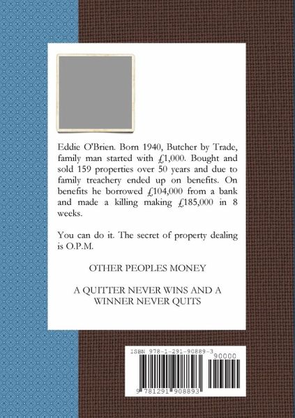 Property developer and entrepreneur. Born 1940, butcher by trade, family man started with £1,000. Bought and sold 158 properties over 50 years and due to family treachery ended up on benefits. On benefits Eddie borrowed £104,000 from a bank and made a killing making £185,000 in 8 weeks. You can do it. A QUITTER NEVER WINS AND A WINNER NEVER QUITS