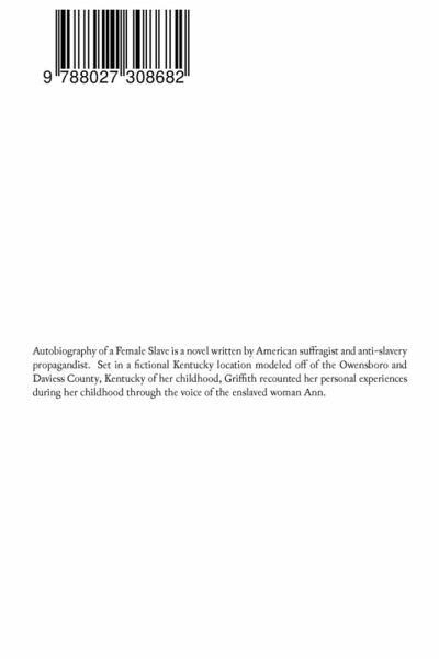 Autobiography of a Female Slave is a novel written by American suffragist and anti-slavery propagandist. Set in a fictional Kentucky location modeled off of the Owensboro and Daviess County, Kentucky of her childhood, Griffith recounted her personal experiences during her childhood through the voice of the enslaved woman Ann.