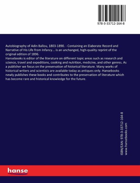 Autobiography of Adin Ballou, 1803-1890. - Containing an Elaborate Record and Narrative of His Life from Infancy... is an unchanged, high-quality reprint of the original edition of 1896.