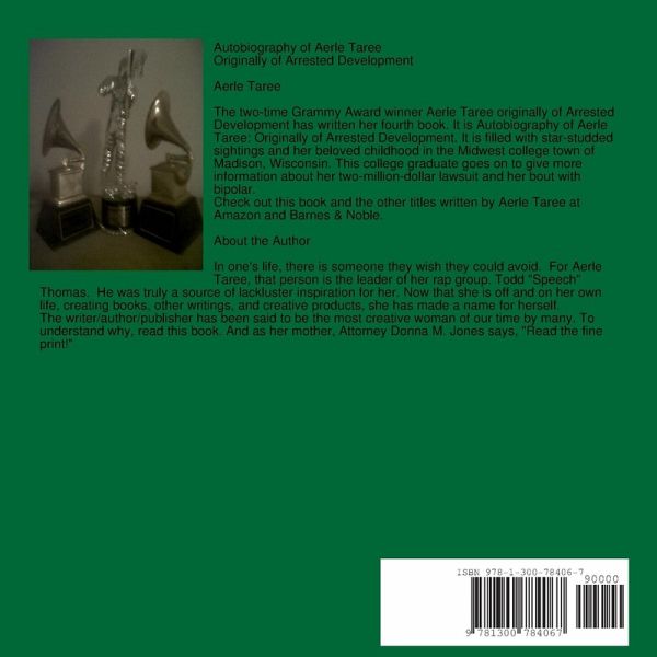 Aerle Taree originally of the two-time Grammy Award winning group Arrested Development is open her heart and soul amongst these pages, she shares her most intimate details of her life. There are specific facts about her memories with her the childhood elite circle of friends, the two-million-dollar group, and other entertainer sightings.