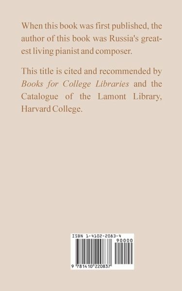 When this book was first published, the author of this book was Russia's greatest living pianist and composer. This title is cited and recommended by Books for College Libraries and the Catalogue of the Lamont Library, Harvard College.