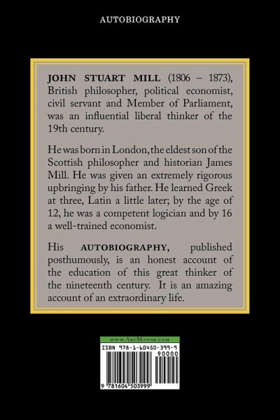 A special large print edition, with easy to read text, of J. S. Mill's autobiography.