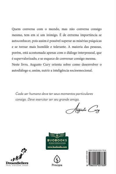 Quem conversa com o mundo, mas não conversa consigo mesmo, tem em si um inimigo. É de extrema importância se autoconhecer, pois assim é possível superar as misérias psíquicas e se tornar mais humilde e tolerante. A maioria das pessoas, porém, está acostumada apenas com o diálogo interpessoal, que é supervalorizado, e se esquece de conversar consigo mesma. Neste livro, Augusto Cury orienta sobre como desenvolver o autodiálogo e, assim, nutrir a inteligência socioemocional.