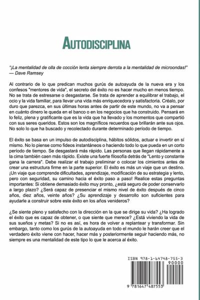 Si siempre ha deseado alcanzar el éxito, pero no considera que la buena suerte o un talento excepcional le ayudará a conseguirlo, continúe leyendo... ¿Está cansado de no obtener los resultados que desea? ¿Ha intentado el pensamiento positivo, las afirmaciones y la buena suerte, pero nada parece darle el resultado a largo plazo que buscaba? ¿Finalmente desea deshacerse de la postergación y descubrir cómo puede aumentar su productividad como nunca antes? Si es así, entonces ha venido al lugar correcto. Tiene que saber, lograr sus objetivos no tiene que ser difícil. Incluso si lo ha intentado y fallado anteriormente. De hecho, es más fácil de lo que imagina. Un estudio realizado por Duckworth y Martin Seligman en 2004 demostró que la autodisciplina es mejor indicador de éxito que el coeficiente intelectual. Y lo mejor de todo, la autodisciplina es una habilidad que se puede aprender, lo que significa que puede lograr el éxito sin poseer un talento único o un IQ excepcionalmente alto. A continuación, una parte de lo que descubrirá:Lo único que le mantendrá motivado cuando otros se rindan Cómo convertir los obstáculos en oportunidades Una estrategia secreta que le permitirá lograr más objetivos al instante que la persona promedio El error más común que cometen las personas que interrumpe su creatividad y momentos "eureka" vitales 12 preguntas sorprendentes que le ayudarán a mantener su deseo de éxito 7 poderosos hábitos utilizados por personas exitosas que le ayudan a lograr más La mejor inversión que puede hacer Y mucho, mucho más ¡Obtenga ahora este libro para aprender más acerca de la autodisciplina!