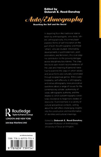In departing from the traditional stance taken by anthropologists, who study 'others' ethnographically, this timely book explores forms of self-inscription on the part of both the ethnographer and those 'others' who are studied. Informed by developments in postmodernism, postcolonialism, and feminism, this is an original contribution to the growing dialogue across disciplinary boundaries. The chapters build upon recent reconsiderations of the uses and meaning of personal narrative to examine the ways in which selves and social forms are culturally constituted through biographical genres. Ethnic autobiography, self-reflexivity in ethnography, and native ethnography raise provocative questions about a range of issues for the contemporary scholar: authenticity of voice; ethnographic authority; and the degree to which autoethnography constitutes resistance to hegemonic bodies of discourse. Examined here in a variety of cultural and political contexts, writing about the self offers challenging insights into the construction and transformation of identities and cultural meanings.