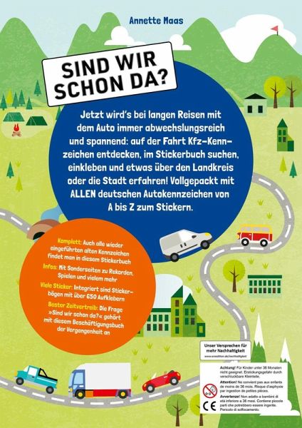 Komplett: Auch alle wiedereingeführten alten Kennzeichen findet man in diesem StickerbuchInfos: Mit Sonderseiten zu europäischen Kennzeichen, Rekorden, Spielen und vieles mehrViele Sticker: Integriert sind Stickerbögen mit über 650 Aufklebern. Die Bögen sind perforiert zum leichten HeraustrennenBester Zeitvertreib: Sind wir schon da? Gehört mit diesem Beschäftigungstitel der Vergangenheit an