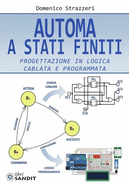 Il progresso tecnologico, con l'avvento dei microcontrollori a microprocessore, ha permesso di studiare e realizzare sistemi molto più complessi di quelli realizzabili con l'approccio della logica cablata, in cui vengono utilizzati dispositivi a bassa o media scala di integrazione. Inoltre, gli automi a stati finiti progettati per mezzo di un microcontrollore (nel testo si farà riferimento alla scheda Arduino Uno) presentano tutti i vantaggi tipici della logica programmata rispetto a quella cablata, a partire dalla flessibilità della programmazione. L'elaborato si propone di studiare i sistemi discreti, ovvero quelli che è possibile caratterizzare con un numero limitato di stati di funzionamento, utilizzando entrambi gli approcci, sia della logica cablata che di quella programmabile. Nella prima parte, gli automi a stati finiti saranno progettati in logica combinatoria e sequenziale, ovvero le reti che simulano e descrivono il sistema dipenderanno da dispositivi integrati con porte logiche e flip flop di tipo J-K, D o T. Nella seconda parte, invece, i dispositivi di input e output comunicheranno con e per mezzo del microcontrollore Arduino UNO, permettendo così la progettazione di sistemi più articolati ma anche più vicini a quelli reali, dotati di interfacce di collegamento con vari dispositivi, quali, ad esempio, sensori analogici, attuatori, display per la visualizzazione di informazioni ecc. Contenuti: Parte uno: Progettazione di Automi a Stati finiti con reti logiche sequenziali. Parte due: Progettazione di Automi a Stati finiti con Microcontrollore Arduino. Das Urheberrecht an bibliographischen und produktbeschreibenden Daten und an den bereitgestellten Bildern liegt bei Informazioni Editoriali, I.E. S.r.l., oder beim Herausgeber oder demjenigen, der die Genehmigung erteilt hat. Alle Rechte vorbehalten.