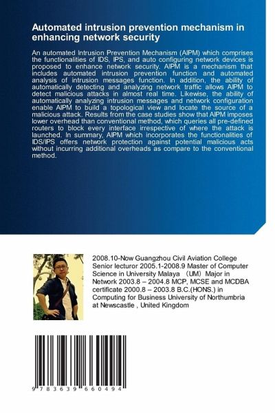 An automated Intrusion Prevention Mechanism (AIPM) which comprises the functionalities of IDS, IPS, and auto configuring network devices is proposed to enhance network security. AIPM is a mechanism that includes automated intrusion prevention function and automated analysis of intrusion messages function. In addition, the ability of automatically detecting and analyzing network traffic allows AIPM to detect malicious attacks in almost real time. Likewise, the ability of automatically analyzing intrusion messages and network configuration enable AIPM to build a topological view and locate the source of a malicious attack. Results from the case studies show that AIPM imposes lower overhead than conventional method, which queries all pre-defined routers to block every interface irrespective of where the attack is launched. In summary, AIPM which incorporates the functionalities of IDS/IPS offers network protection against potential malicious acts without incurring additional overheads as compare to the conventional method.