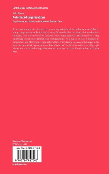 This book attempts to characterize a new organizational form that is now visible in many companies as a substitute of previous forms related to mechanized or mechanistic standards. The book is based on the approach of organizational structure and on Henry Mintzberg's work on organizational configurations. As a matter of fact, it attempts to supplement and update Mintzberg's organizational taxonomy, taking into account changes in the structure and work organization of business firms. The book is written for all people whose work is related to organizations and who are interested in the subjects it deals with.