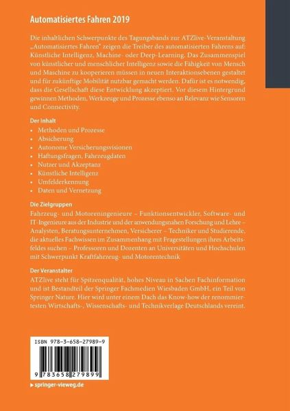 Methoden und Prozesse.- Absicherung.- Autonome Versicherungsvisionen.- Haftungsfragen, Fahrzeugdaten.- Nutzer und Akzeptanz.- Künstliche Intelligenz.- Umfelderkennung.- Daten und Vernetzung.