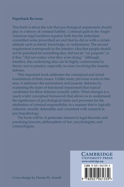 This is a book about the role that psychological impairment should play in a theory of criminal liability.