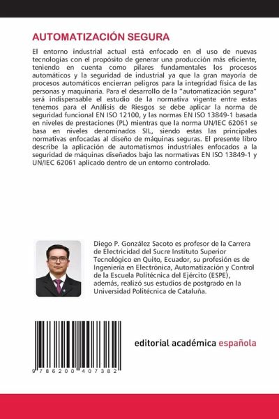 El entorno industrial actual está enfocado en el uso de nuevas tecnologías con el propósito de generar una producción más eficiente, teniendo en cuenta como pilares fundamentales los procesos automáticos y la seguridad de industrial ya que la gran mayoría de procesos automáticos encierran peligros para la integridad física de las personas y maquinaria. Para el desarrollo de la "automatización segura" será indispensable el estudio de la normativa vigente entre estas tenemos para el Análisis de Riesgos se debe aplicar la norma de seguridad funcional EN ISO 12100, y las normas EN ISO 13849-1 basada en niveles de prestaciones (PL) mientras que la norma UN/IEC 62061 se basa en niveles denominados SIL, siendo estas las principales normativas enfocadas al diseño de máquinas seguras. El presente libro describe la aplicación de automatismos industriales enfocados a la seguridad de máquinas diseñados bajo las normativas EN ISO 13849-1 y UN/IEC 62061 aplicado dentro de un entorno controlado.