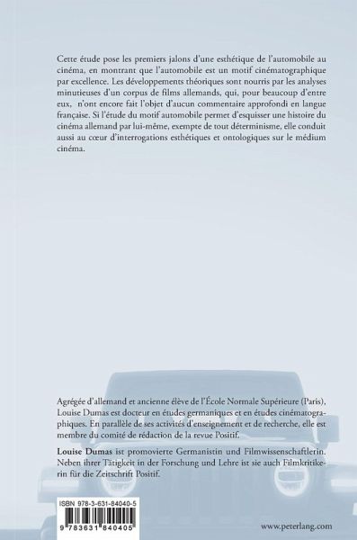 Hier werden die Grundlagen einer Theorie des filmischen Motivs des Automobils erarbeitet, auf der Basis eines aus deutschen Filmen bestehenden Korpus. An das Thema wird narrationstheoretisch sowie film- und medienästhetisch herangegangen. Schließlich führt die Analyse in die Genretheorie und entwickelt dabei der Begriff des "Car Movies".
