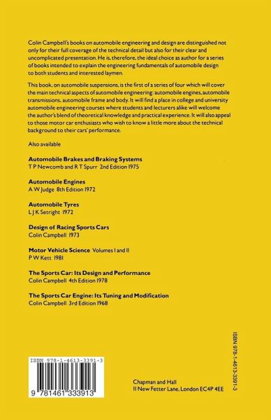 This book is an introduction to the elementary technology of automobile suspensions. Inevitably steering geometry must be included in the text, since the dynamic steering behaviour, road-holding and cornering behaviour are all influenced by the suspension design. Steering mechanisms and steering components are not covered in this book. This is not a mathematical treatise, but only a fool or a genius would attempt to design a motor vehicle without mathematics. The mathematics used in this book should present no problem to a first-year university student. SI units have been used in general, but for the benefit of those not familiar with them we have included in brackets, in many cases, the equivalent values in Imperial units. Many engineers regard the Pascal as an impractical unit of pressure. The author has therefore expressed pressures in bars (1 bar = 105Pa). A deviation from SI units is the use of degrees and minutes, instead of radians, to express camber, castor, roll angles, etc. This is still common practice in the motor industry. No attempt has been made to make any stress calculations on suspension components. The automobile engineering student will have access to other textbooks on such subjects as strength of materials and theory of structures.